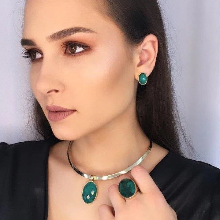 Vendor:PossebonPureNature Ornaments Green Horizon Emerald Stud Earrings and Necklace Set