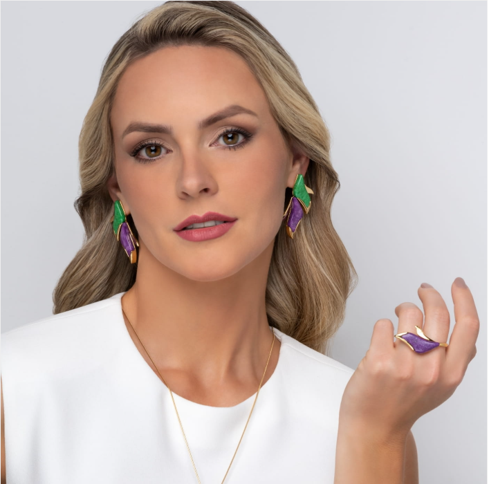 Vendor:AylaTerraFusion Gems Gemstone Duo Green and Purple Feldspar Earrings