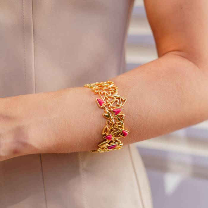 TerraFusion Gems Golden Heart Red Feldspar Cuff Bracelet
