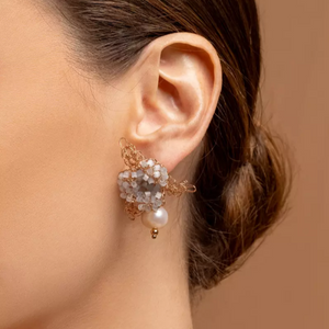 The Blooming Beauty Aflorar -which means 'to bloom'- Crochet Stud Earrings are a stunning showcase of Brazilian craftsmanship, handmade using 18k gold-plated copper wiring. These intricate earrings feature an elegant crochet design inspired by the beauty of a delicate flower and a beautiful pearl to adorn the design. Each piece is carefully crafted by skilled artisans, making it unique, timeless, and a beautiful addition to your jewellery collection.