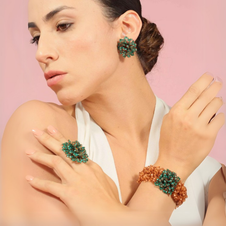 Each piece of our jewellery is individually handcrafted by skilled Brazilian artisans, making every item truly one-of-a-kind. This process requires not only technical expertise but also a deep understanding of traditional craftsmanship. The crochet technique used to shape the 18k gold-plated copper wire is both intricate and time-intensive, ensuring that each creation is a true labour of love. Since every piece is made by hand, no two items are exactly the same, adding a layer of exclusivity and personal connection to the jewellery. Small variations in the pattern or finish celebrate the individuality of each artisan’s touch, making these pieces a perfect fusion of art and design. By wearing one of these handcrafted pieces, you carry with you a piece of Brazilian heritage and artistry.