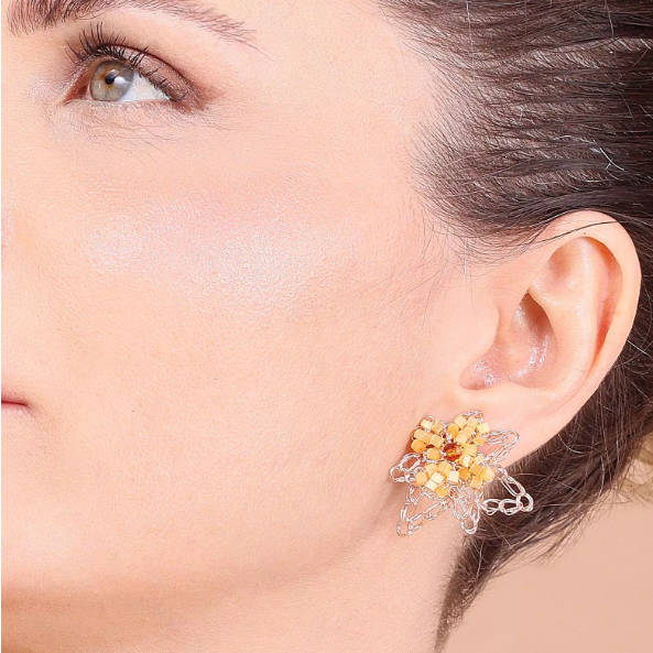 The Raquel Blooming Beauty Flowery Meadow Crochet Stud Earrings are a stunning showcase of Brazilian craftsmanship, handmade using 18k gold-plated copper wiring. These intricate earrings feature an elegant crochet design inspired by the beauty of a delicate Flowery Meadow. Each piece is carefully crafted by skilled artisans, making it unique, timeless, and a beautiful addition to your jewellery collection.