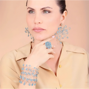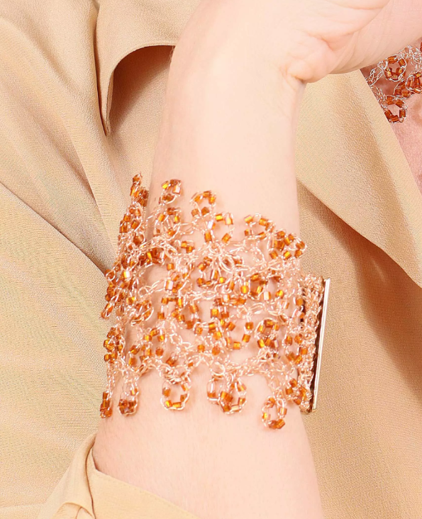 The Blooming Beauty Marina Crochet Maxi Bracelet is a stunning showcase of Brazilian craftsmanship, handmade using 18k gold-plated copper wiring. This intricate bracelet features an elegant crochet design inspired by the beauty of delicate flowers. To make this Bracelet more user-friendly, it has a magnetic clasp. Each piece is carefully crafted by skilled artisans, making it unique, timeless, and a beautiful addition to your jewellery collection.