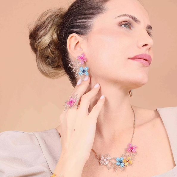 The Raquel Blooming Beauty Flowery Meadow Crochet Long Earrings are a stunning showcase of Brazilian craftsmanship, handmade using 18k gold-plated copper wiring. These intricate earrings feature an elegant crochet design inspired by the beauty of a delicate Flowery Meadow. Each piece is carefully crafted by skilled artisans, making it unique, timeless, and a beautiful addition to your jewellery collection.
