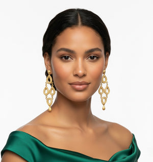 Lightweight, dramatic, and beautifully detailed, they are the perfect earrings to elevate any look, from summer dresses to evening wear.