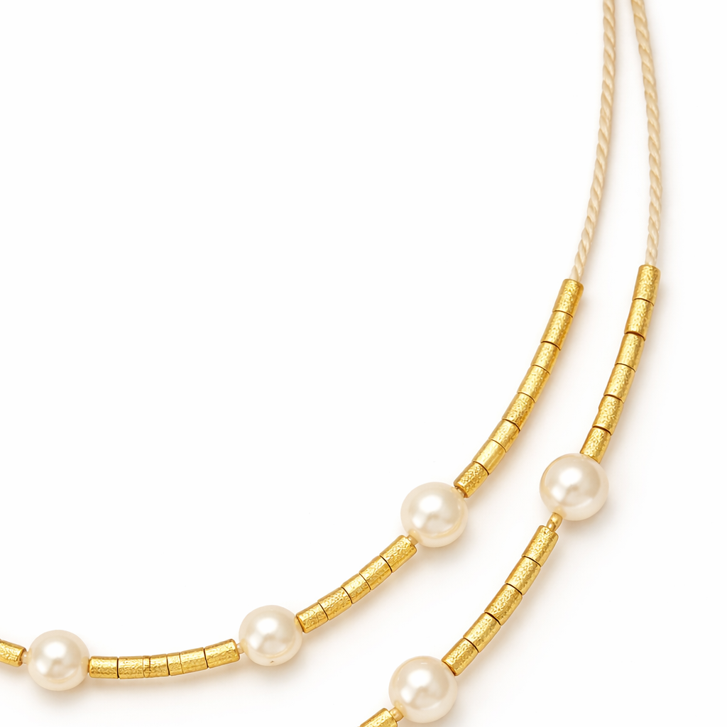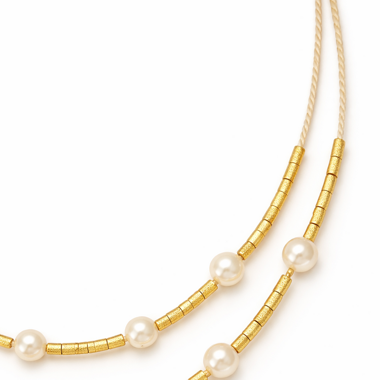 Ethereal Amazonia Layered Buriti Necklace with Fresh Water Pearl Details