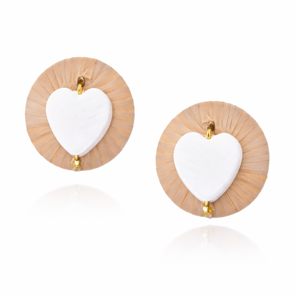 Delicate yet full of meaning, these Buriti Fibre & Mother of Pearl Heart Stud Earrings celebrate the beauty of natural materials and thoughtful craftsmanship.