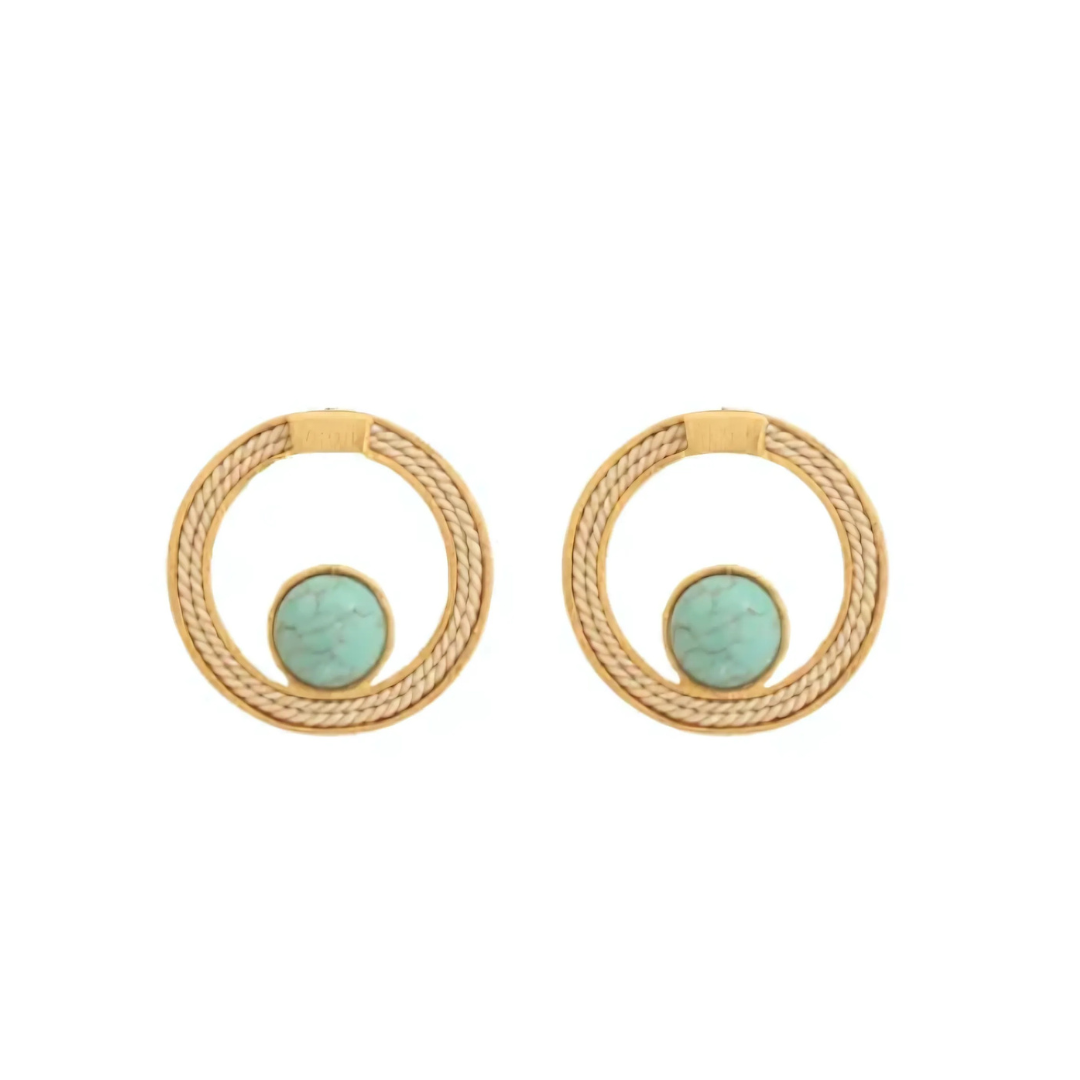Experience the exquisite grace of the Ethereal Amazonia Buriti and Green Quartz Stud Earrings. Crafted to reflect Brazil's rich natural beauty, these earrings embody a harmonious blend of sophistication and nature’s finest treasures. The earrings are 18k gold plated and handcrafted with Buriti tree leaves and natural stones, providing a natural and earthy look. Perfect for formal or casual occasions, these earrings evoke a timeless sense of classic beauty.