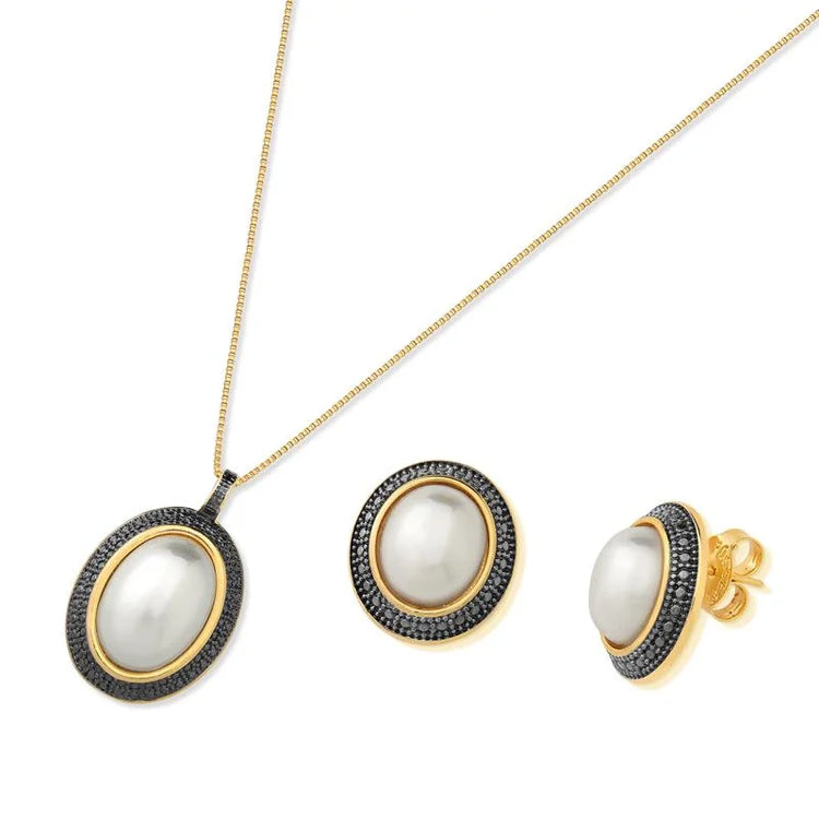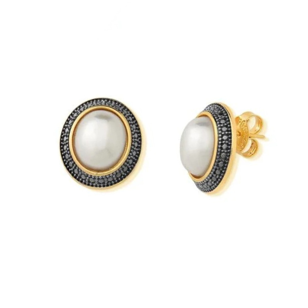 - Material: Natural Freshwater White or Dark Pearls, 18k Gold plated, Dark Rhodium Details.