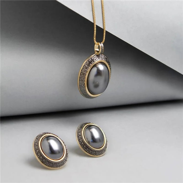 PearlFusion Fierce Elegance Natural Freshwater Pearl Stud Earrings and Necklace Set