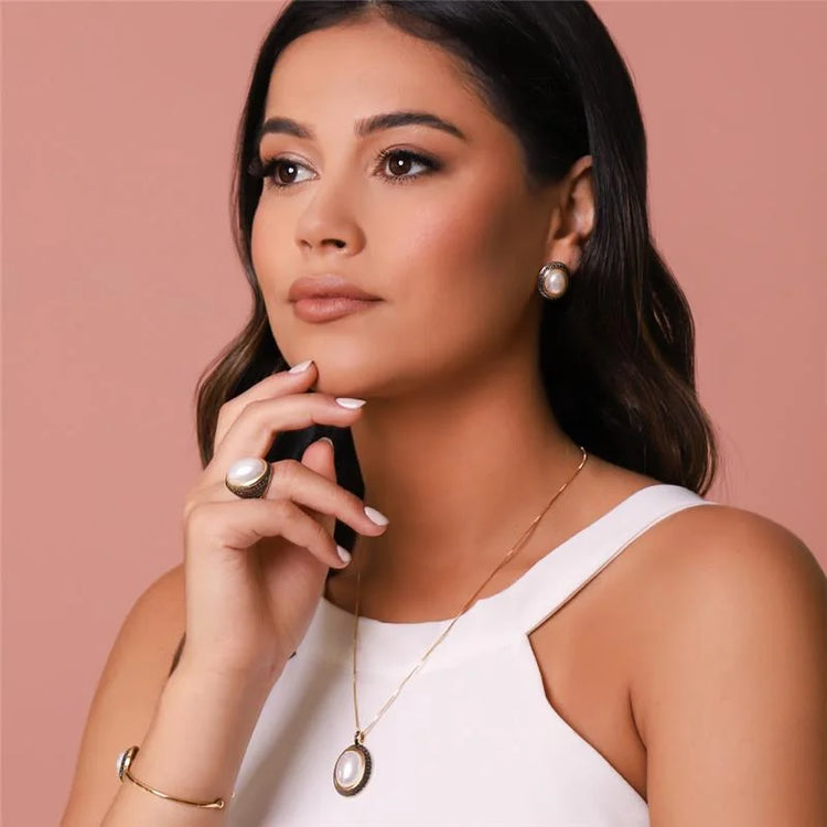 Embrace your individuality with the captivating Fierce Elegance Natural Freshwater Pearl Stud Earrings from the PearlFusion Collection. Featuring radiant natural freshwater white and dark pearls set in a sleek, modern design with dark rhodium details, this handmade piece exudes natural beauty and sophistication. Its gorgeous iridescent hue and unique colour are sure to draw compliments, making it a standout accessory in any collection. Let the Fierce Elegance Natural Freshwater Pearl Earrings become a cherished part of your everyday style, reflecting the timeless connection between modern beauty and nature.