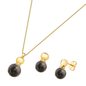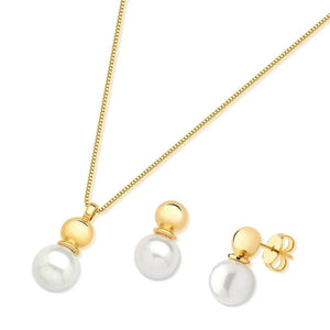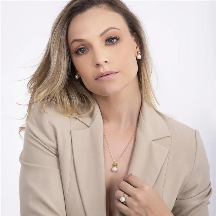 PearlFusion Majestic Aura Natural Freshwater Pearl Stud Earrings and Necklace Set