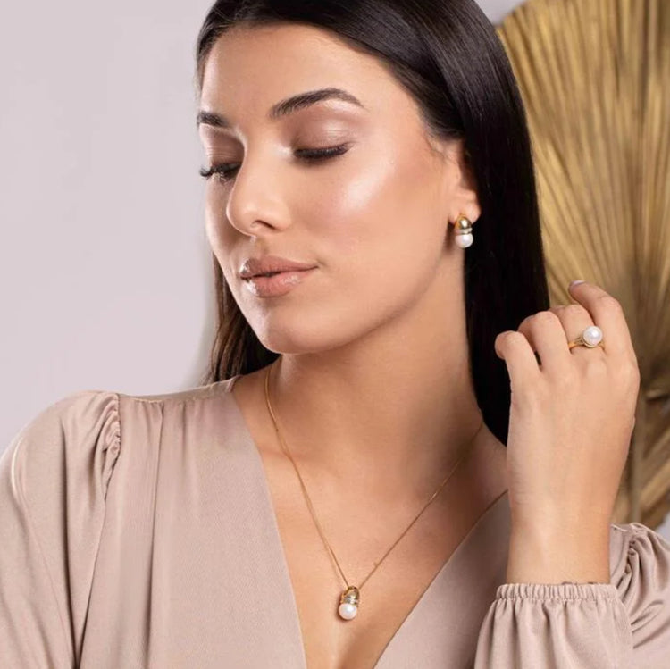- Material: Natural Freshwater White or Dark Pearls, White Rhodium, 18k Gold plated.