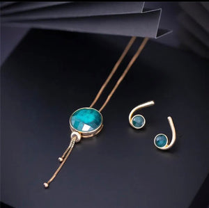 This Emerald Adjustable Necklace & Earrings Set features genuine Brazilian emerald stones framed in warm 18k gold plating. With its refined lines and striking green tones, this set brings together elegance, craftsmanship, and the richness of Brazil’s natural landscapes. The adjustable necklace allows you to shorten or lengthen the chain by sliding the bead beneath the pendant—making it perfect for layering or wearing as a standalone statement.