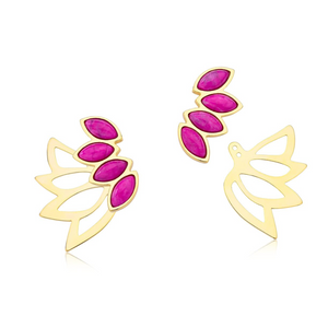 Discover the TerraFusion Flourish Earrings, elegantly crafted by hand with pink feldspar stones and finished in 18k gold plating. Created in collaboration with Brazilian artisan communities, these earrings embody sustainable luxury and distinctive design, reflecting the ethos of Treasures of Brazil. Wear a piece that combines ethical craftsmanship with timeless sophistication.