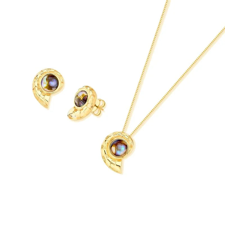 TerraFusion Gems Nautilus Magic Abalone Shell Stud Earrings and Necklace Set