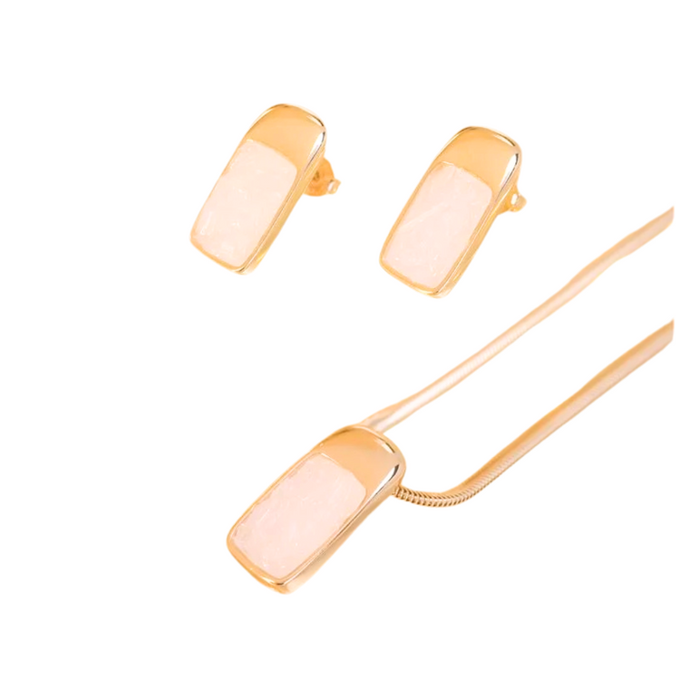 Make an unforgettable statement with the Glamour Gems Earrings and Necklace Set from the TerraFusion Gems collection. Featuring stunning natural druzy stones, this set will bring an undeniable charm to any ensemble. Crafted with care, the necklace and earrings are designed to complement each other perfectly, enhancing your look with their radiant beauty. This timeless set will remain a cherished addition to your jewellery collection for years to come.