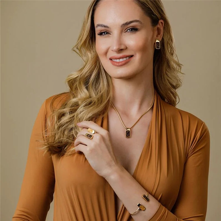Brazilian natural stones are the heart of gold-plated jewellery, offering a unique blend of vibrant beauty and deep cultural significance. Renowned for their stunning colours and rich diversity, these stones are carefully selected and set in luxurious gold plating, creating pieces that are both elegant and full of life. Each stone, whether it’s amethyst, citrine, or quartz, carries its own energy and story, making every piece of jewellery not just an accessory, but a symbol of Brazil's natural heritage. Gold plating enhances the natural allure of these stones, resulting in timeless jewellery that exudes both sophistication and the spirit of Brazil.