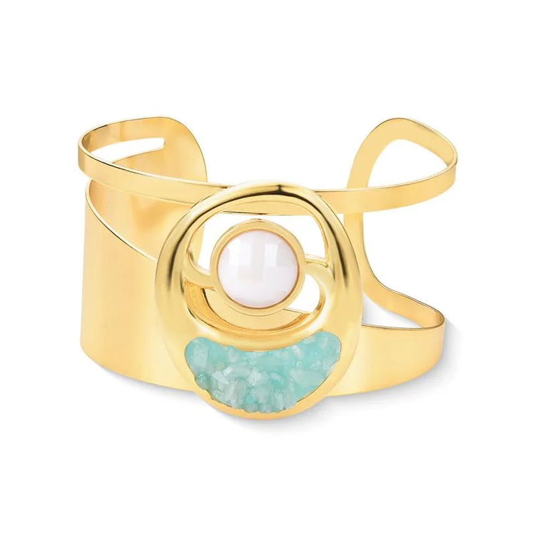 TerraFusion Gems Glitz and Glam Pearly Mother of Pearl and Citrine Druzy Cuff Bracelet