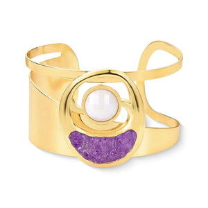 Make an unforgettable statement with the Glitz and Glam Cuff Bracelet from the TerraFusion Gems collection. Featuring stunning natural druzy stones, this bracelet will bring an undeniable charm to any ensemble. Crafted with care, the combination of stones is designed to complement each other perfectly, enhancing your look with their radiant beauty. This timeless piece will remain a cherished addition to your jewellery collection for years to come.