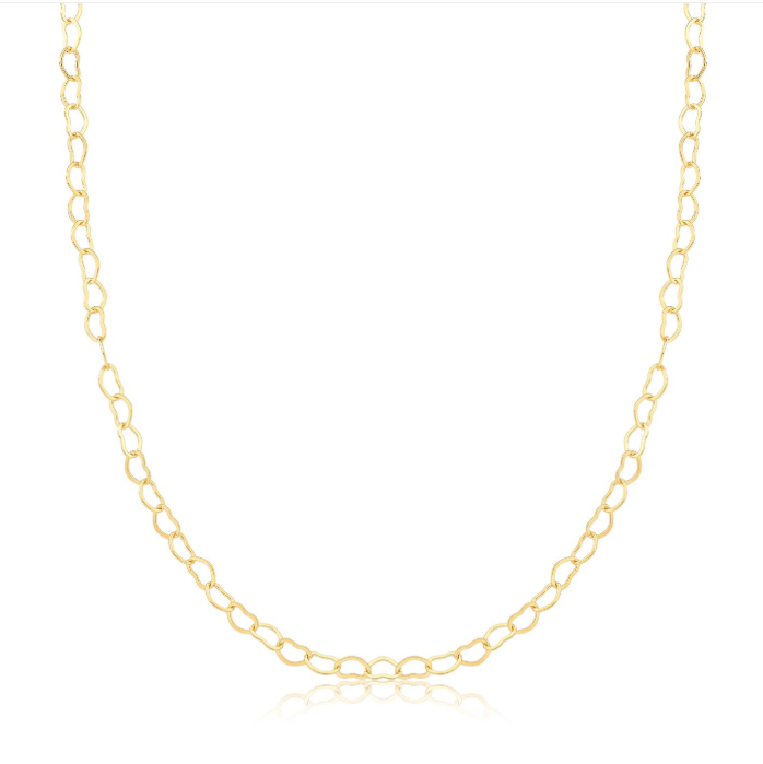 Introducing the Golden Heart Chain Necklace from our TerraFusion Gems collection—a delicate piece that exudes elegance and timeless charm. This special necklace features a stunning heart-shaped chain radiating warmth and natural beauty. Plated in 18k gold, the Golden Heart Chain Necklace adds a touch of luxury to any ensemble. Its unique design makes it a perfect accessory for both everyday wear and special occasions, capturing the essence of love and nature in a piece that will never go out of style.