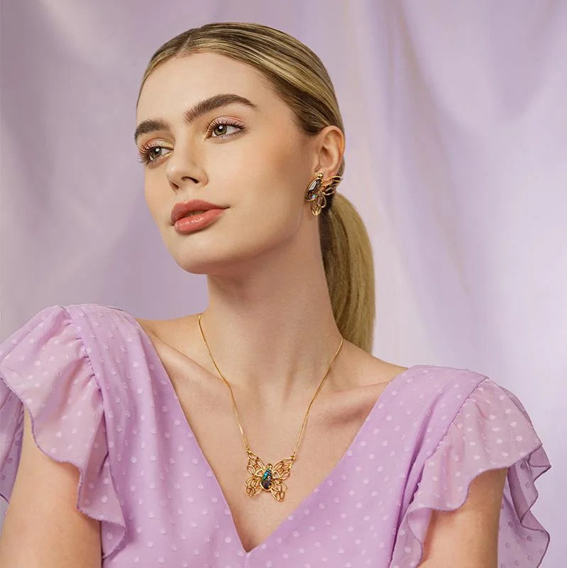 Fabricante:AylaTerraFusion Gems Borboleta Abalone Shell Stud Earrings
