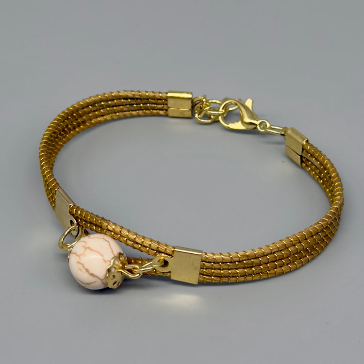 Each bracelet is finished with a natural spherical stone, carefully chosen to complement the organic texture of Golden Grass. Available variations include: