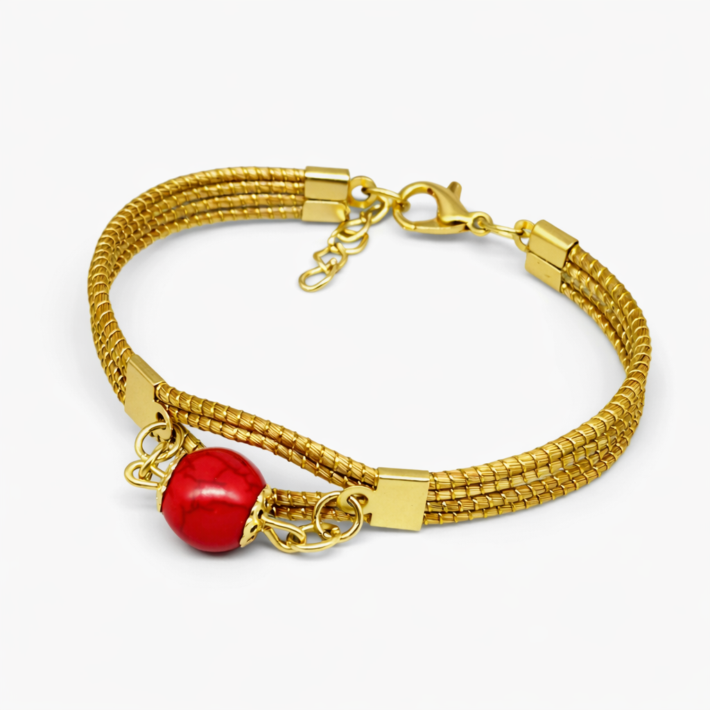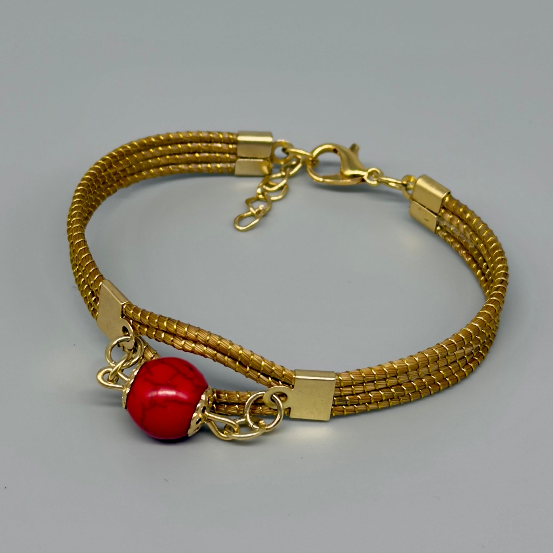 Materials: Brazilian Golden Grass (Capim Dourado), Natural Stone (Golden Grass / White Howlite / Red Howlite), 18k Gold-Plated details