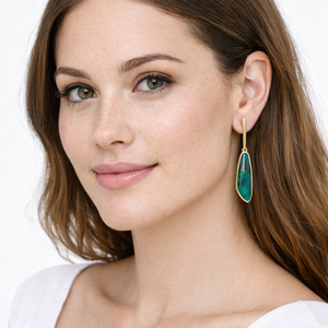 Set on a sleek 18k gold plated frame, the elongated drop silhouette flatters the face and adds effortless sophistication — whether worn for a special occasion or to elevate a minimalist look. Lightweight yet striking, these earrings balance contemporary elegance with timeless design.